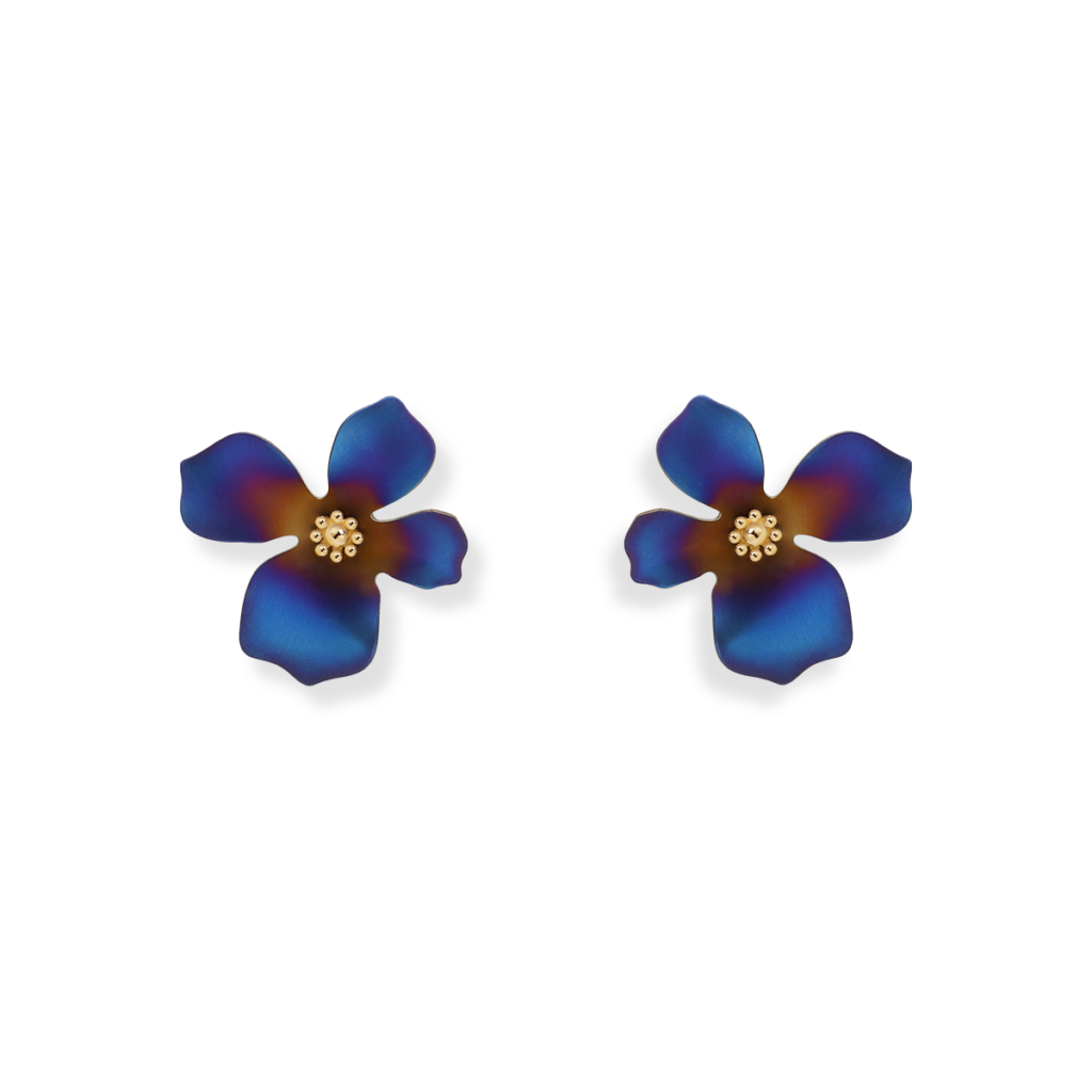 NOWOŚĆKolczyki srebrne z tytanowym kwiatkiem