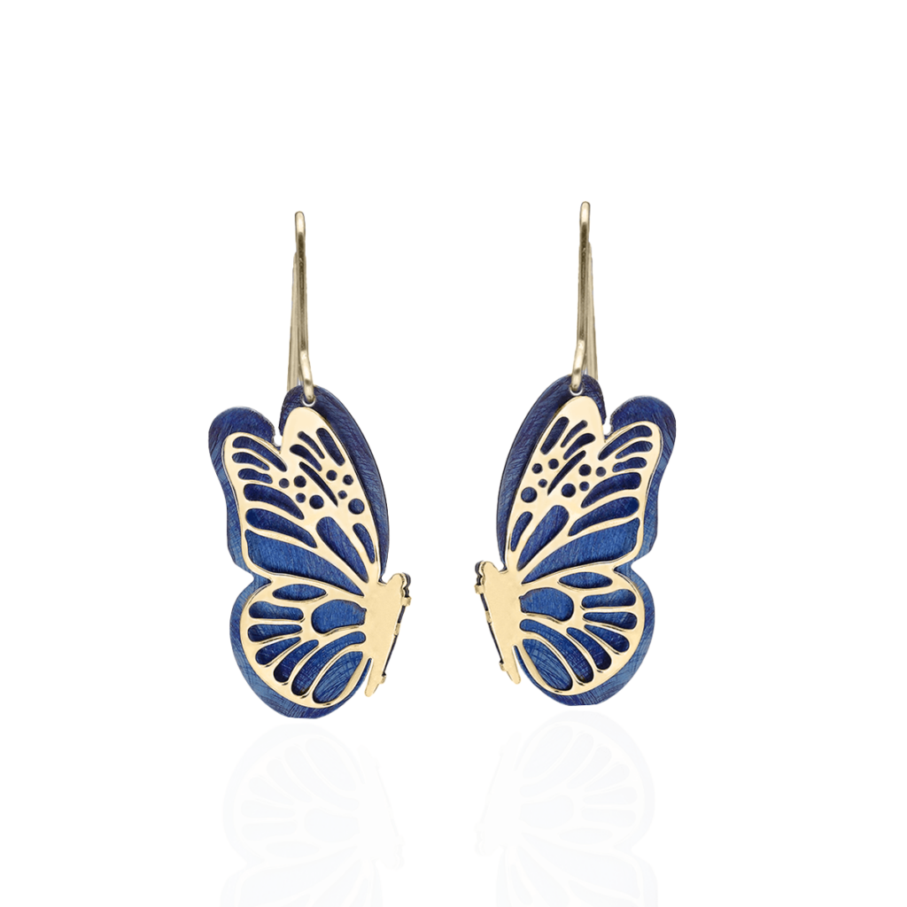 NOWOŚĆKolczyki srebrne wiszące z tytanowym motylem