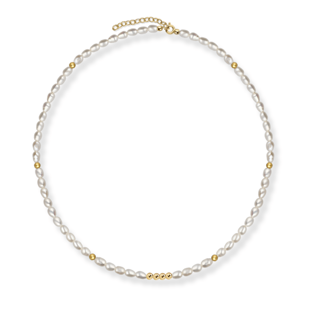 NOWOŚĆNaszyjnik srebrny z pereł naturalnych z kulkami Mini