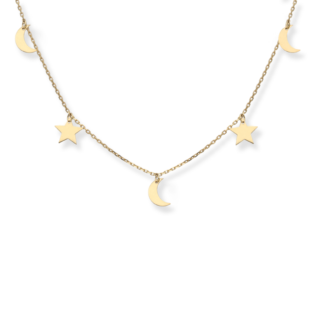Naszyjnik srebrny z gwiazdkami i księżycem