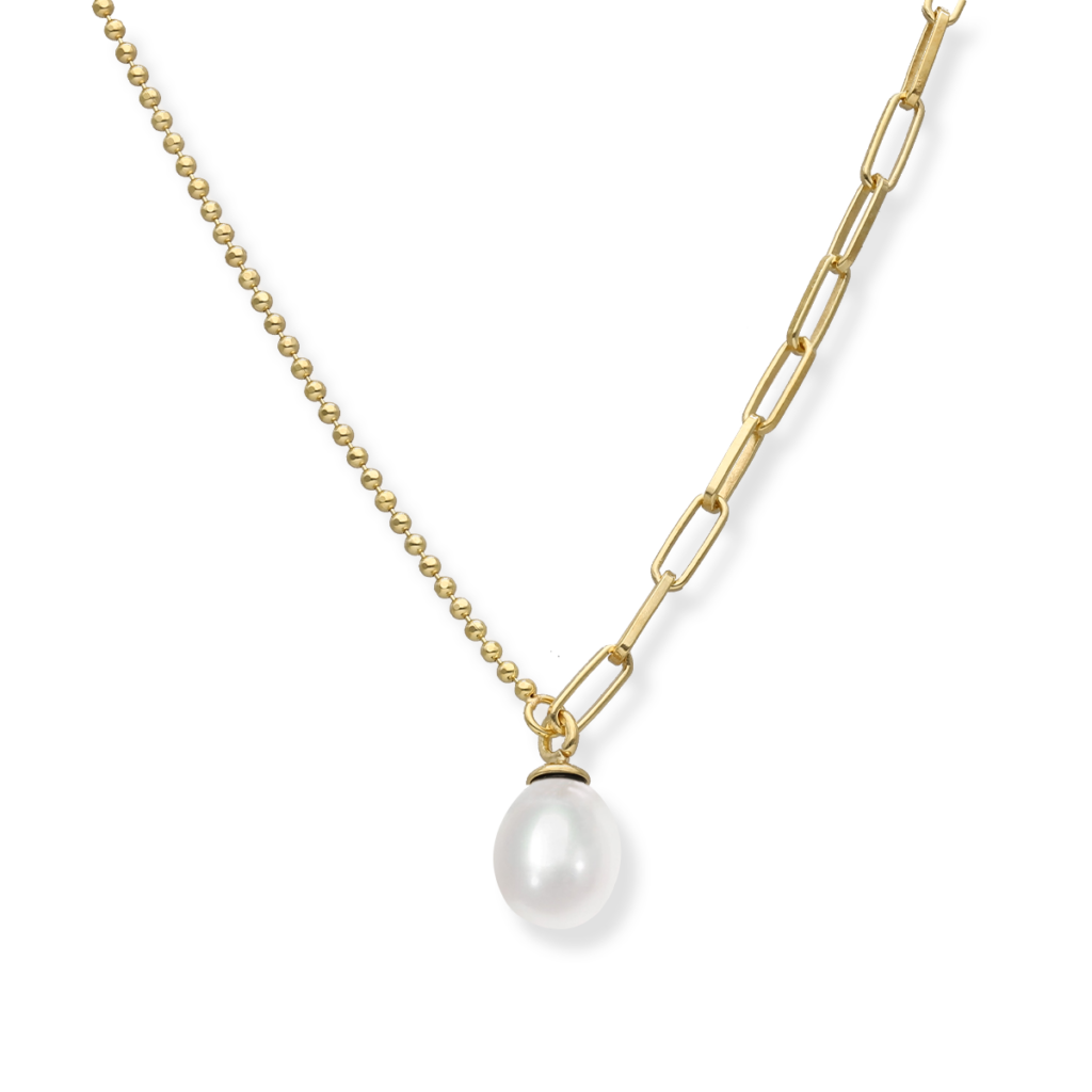 NOWOŚĆNaszyjnik srebrny z pereł naturalnych z perłą