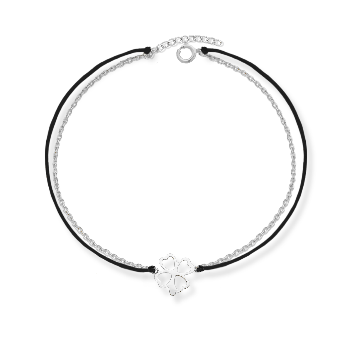 Bransoletka srebrna koniczynka na sznurku
