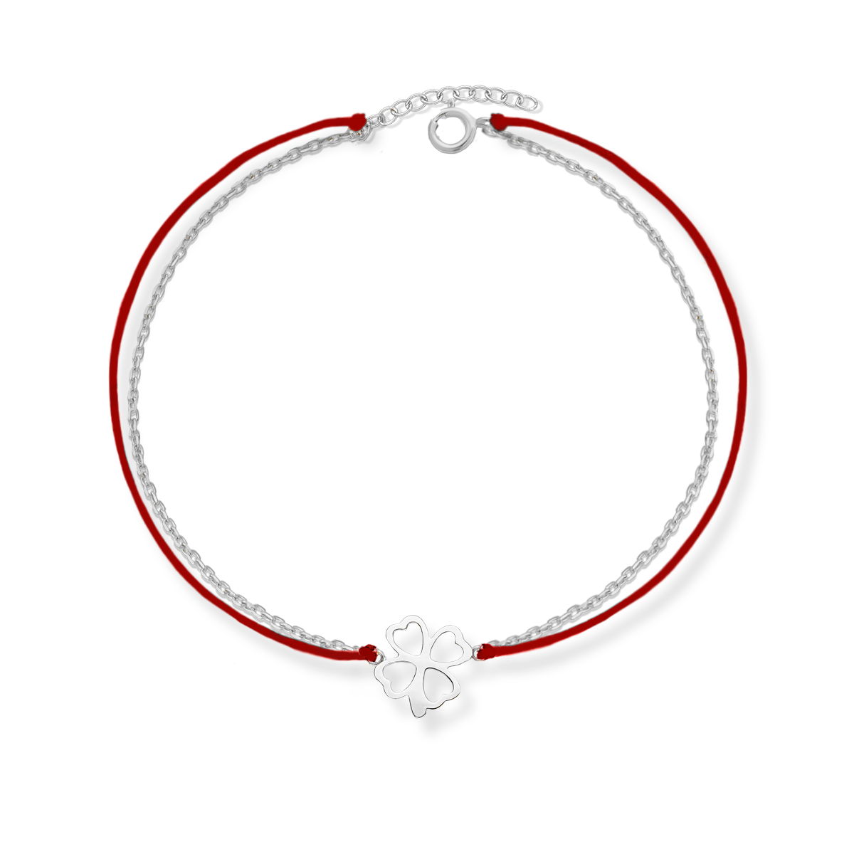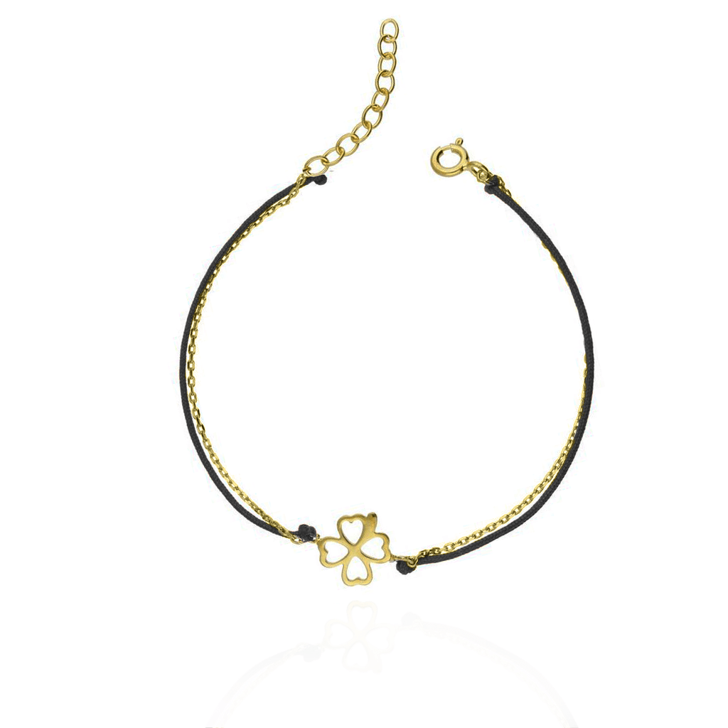 Bransoletka na szczęście srebrna, pozłacana 24-karatowym złotem z koniczynką na czerwonym sznurku to idealna propozycja dla subtelnych Kobiet.
