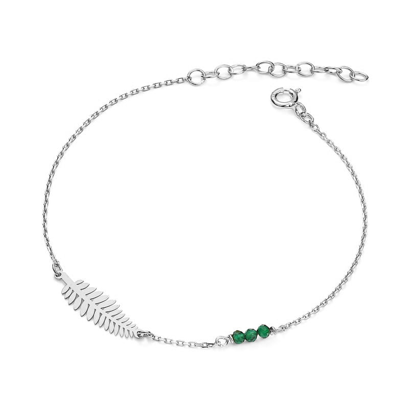 Bransoletka srebrna liść Paproci z kamieniami