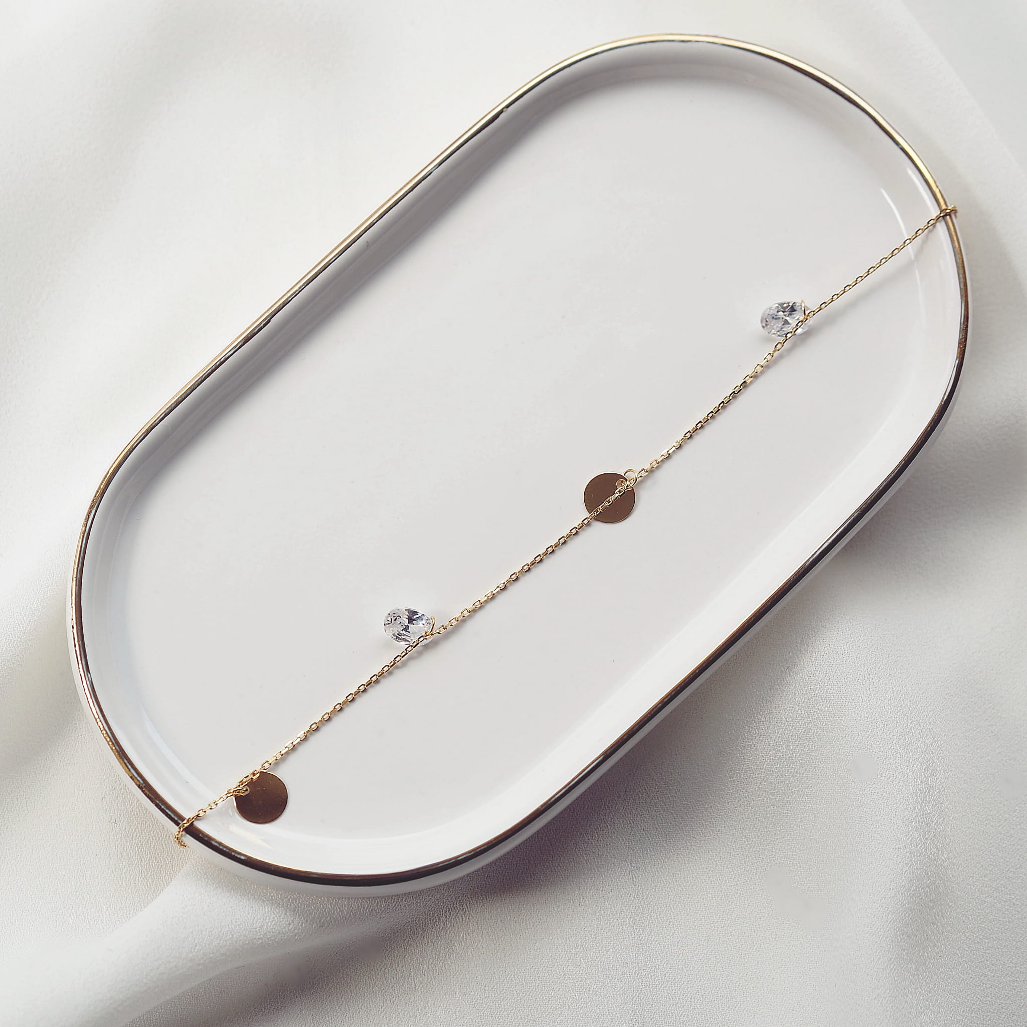 Bransoletka srebrna na nogę z blaszkami i cyrkoniami