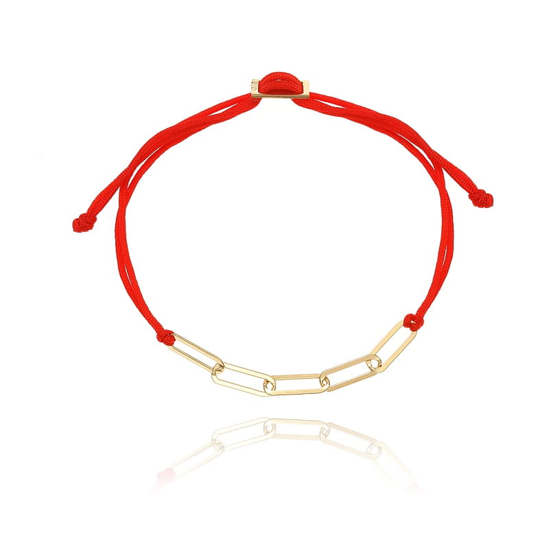 Bransoletka srebrna pozłacana spinacze na czarnym sznurku
