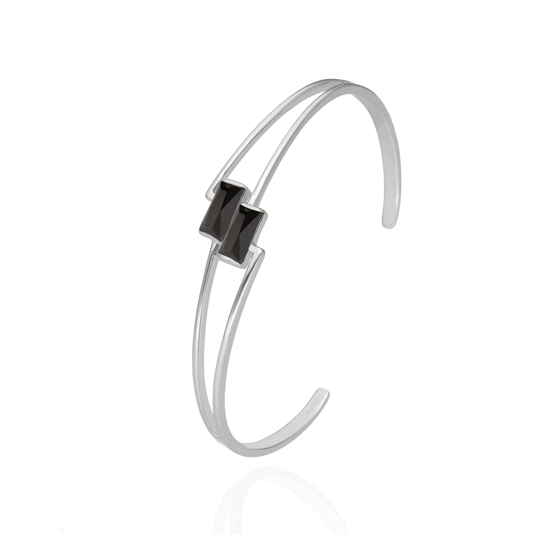 Sztywna bransoletka srebrna wraz z cyrkoniami stanowi wspaniałą propozycję dla pasjonatek współczesnego piękna.