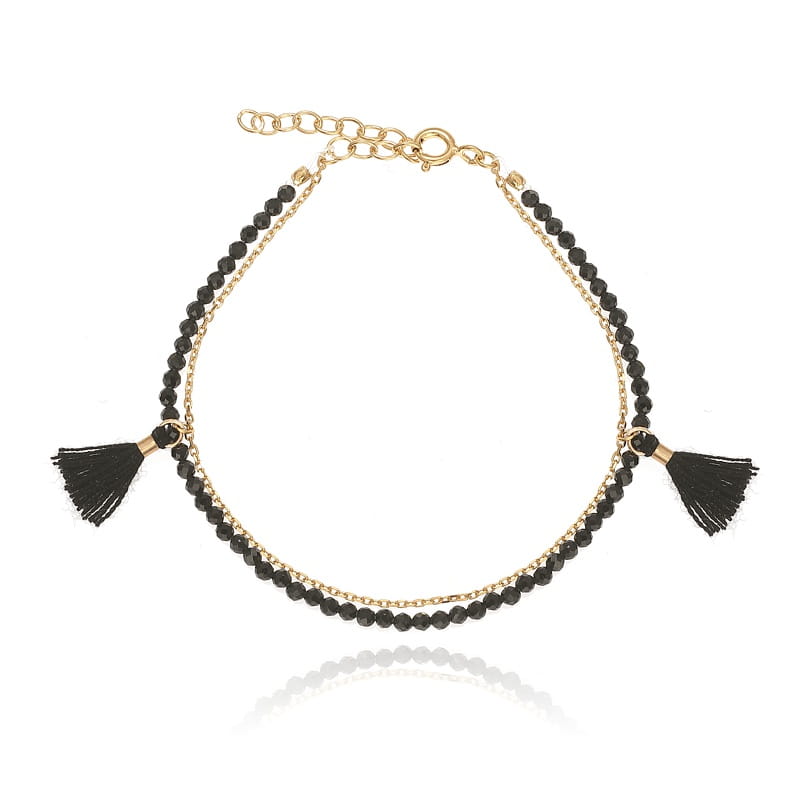 Niezwykle oryginalna, podwójna bransoletka wykonana z rodowanego srebra, wraz z czarnymi spinelami i  chwostami stanowi wspaniałą propozycję dla zjawiskowych kobiet.