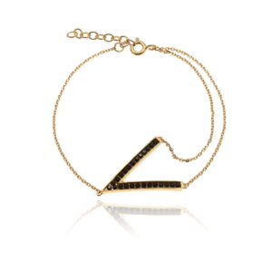 Bransoletka srebrna, pokryta 24-karatowym złotem z krzyżykiem i czarnymi kryształami Swarovski.
