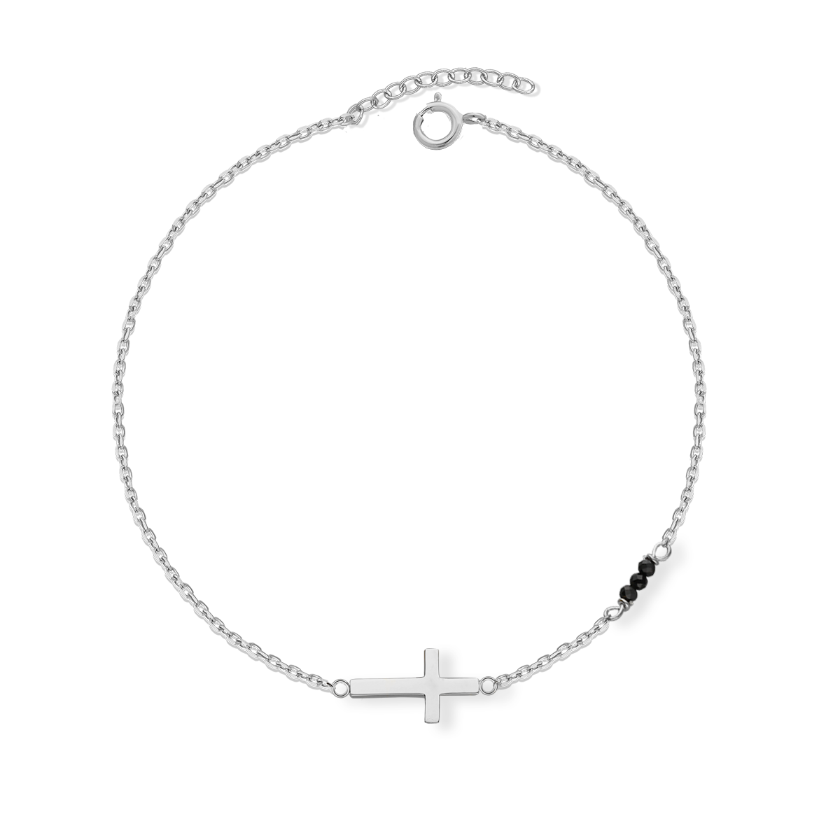 Wyjątkowa pod każdym względem bransoletka wykonana z rodowanego srebra wraz z efektownym krzyżykiem i czarnymi onyksami to wspaniała propozycja dla wymagających kobiet.