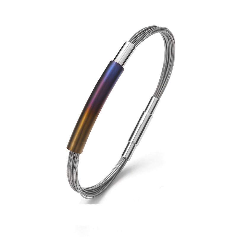 Bransoletka z linek stalowych z elementem srebrnym i tytanowym