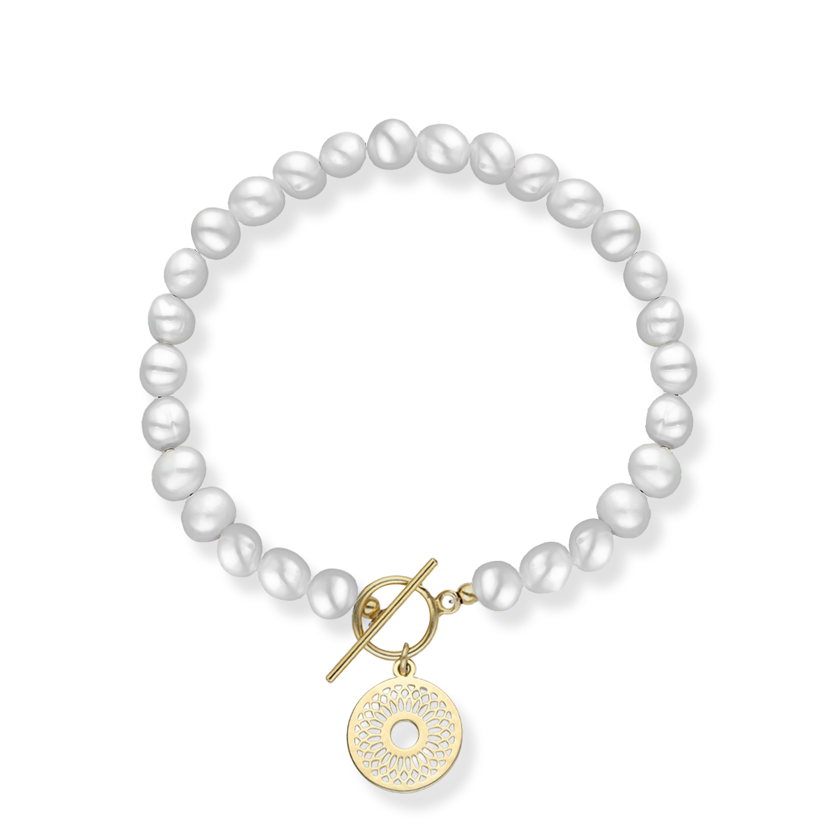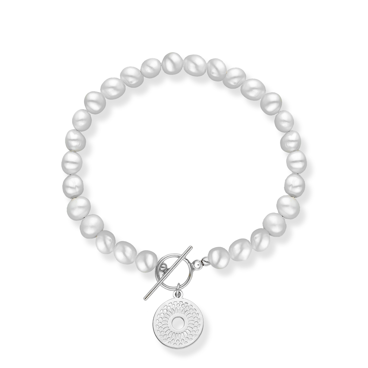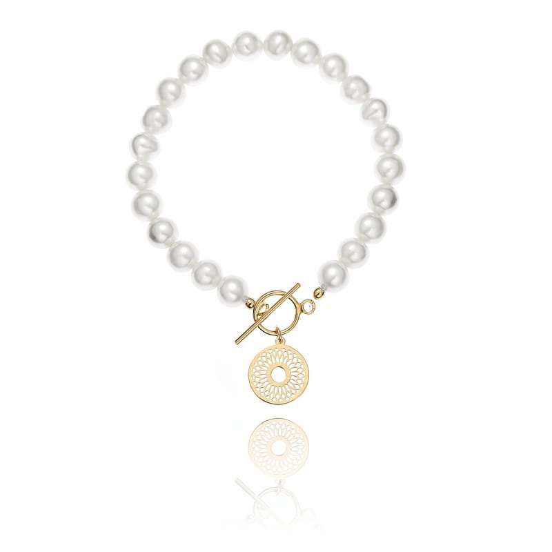 Bransoletka srebrna z pereł naturalnych z dużym ażurem