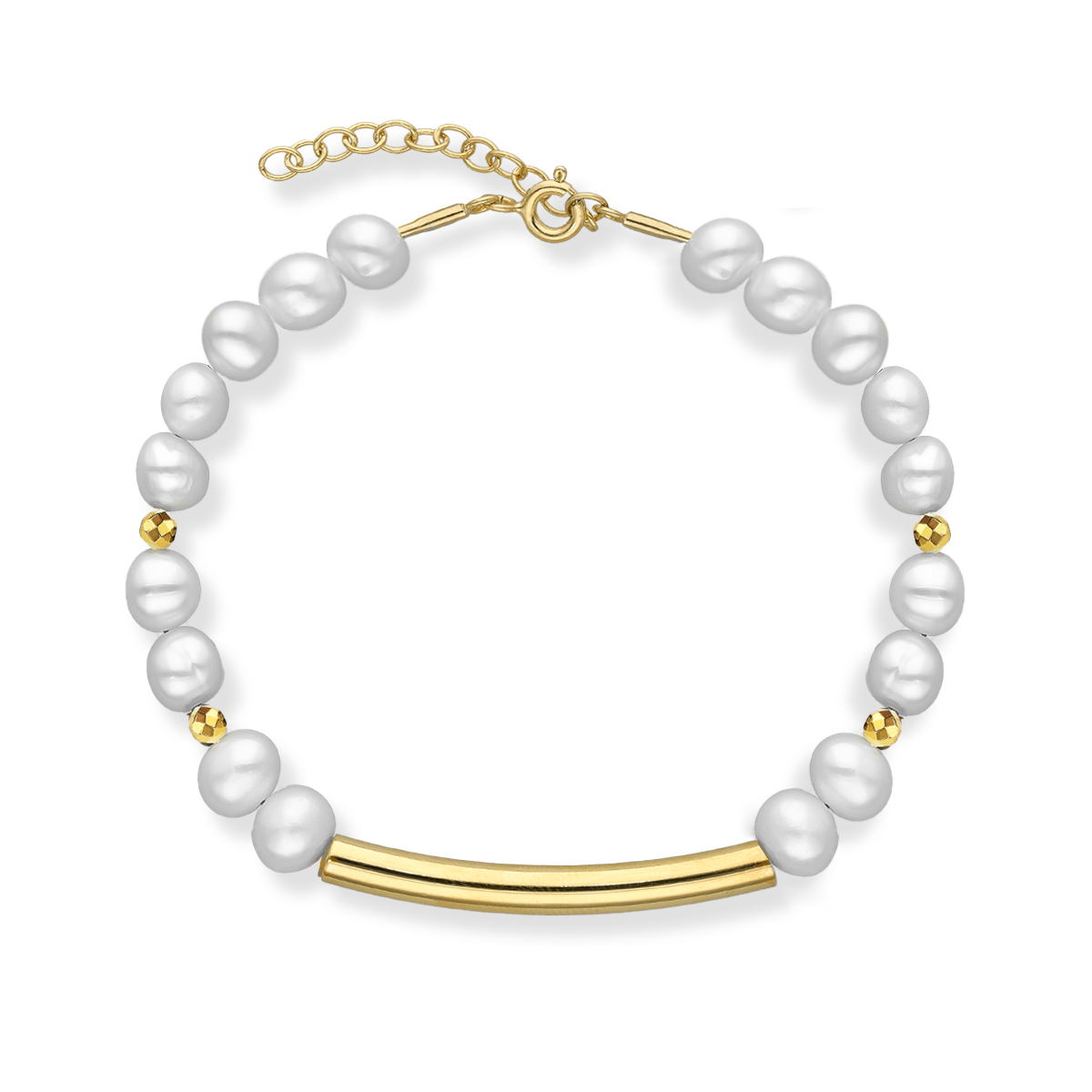 Bransoletka srebrna z pereł naturalnych z rurką i kulkami