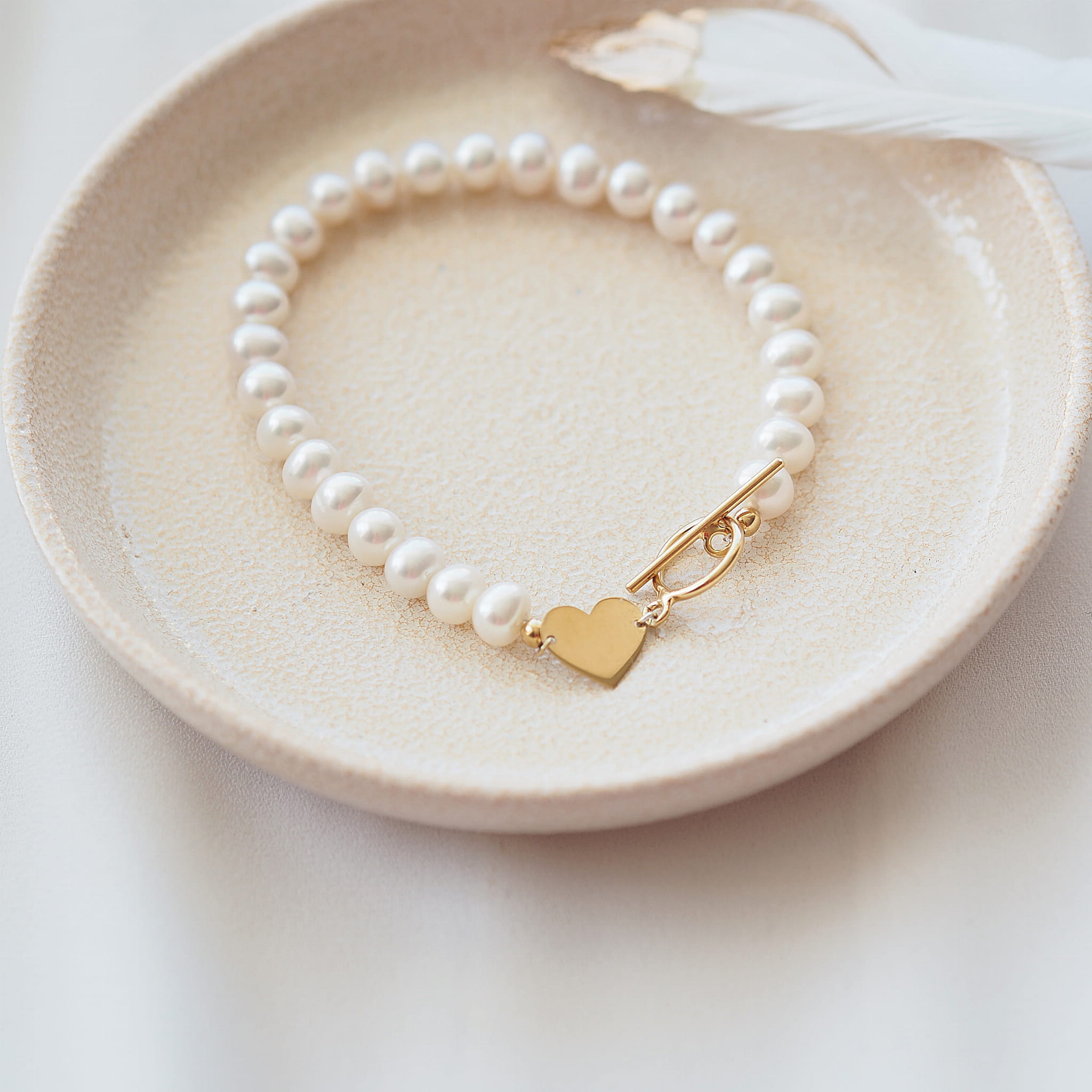 Bransoletka srebrna z pereł naturalnych z Sercem