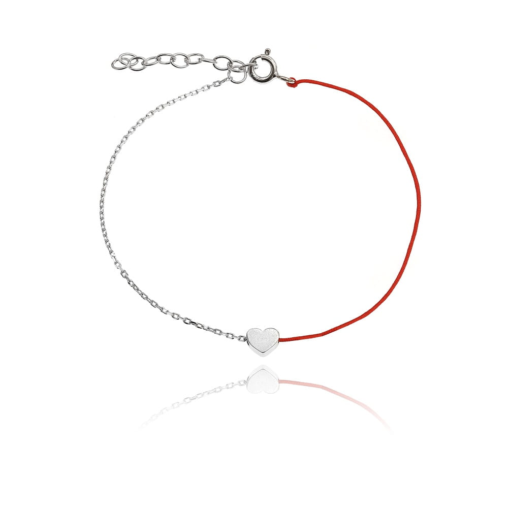 Bransoletka srebrna z sercem i sznurkiem