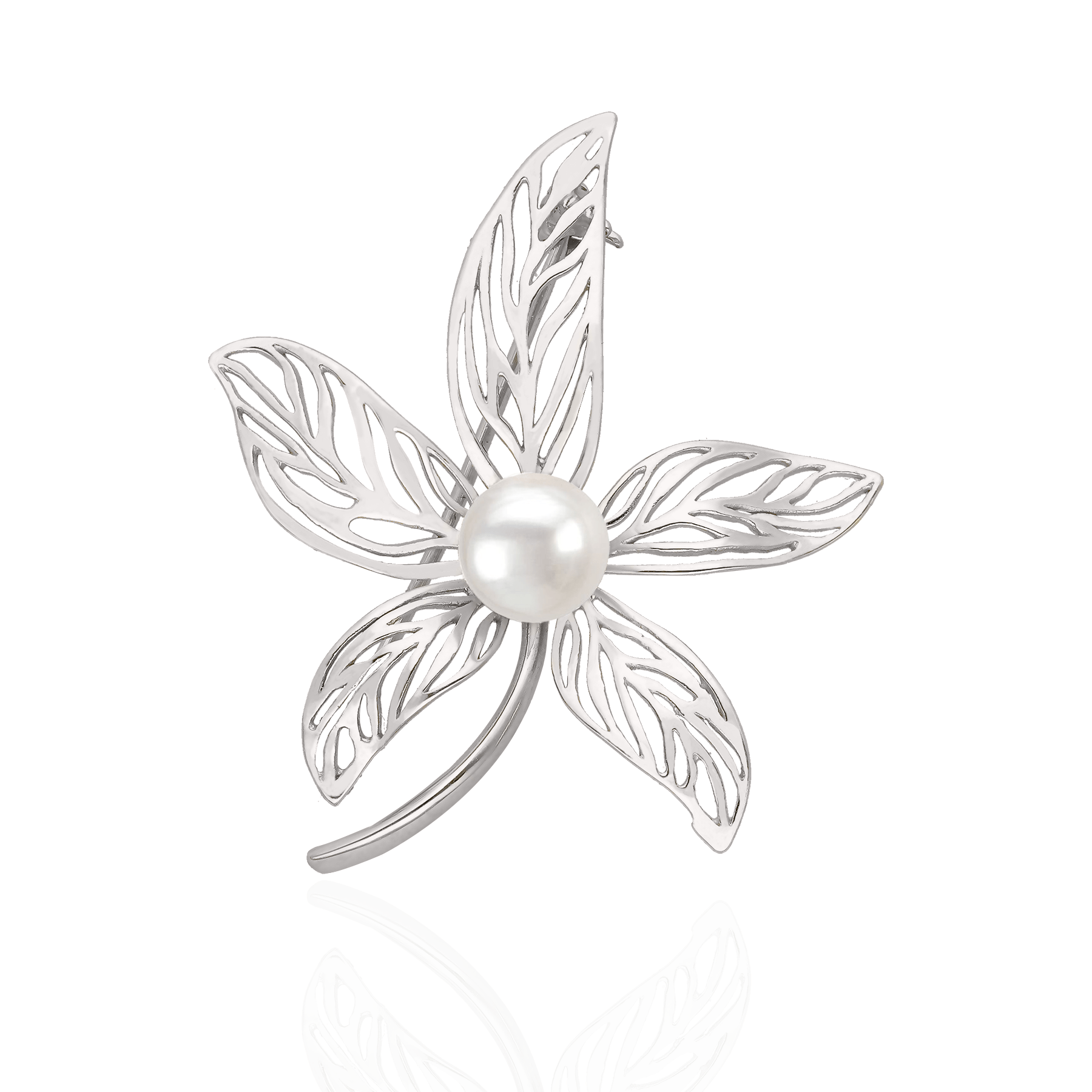 Niezwykle oryginalna broszka wykonana z rodowanego srebra w kształcie Kwiata z perłą naturalną hodowlaną to atrakcyjna propozycja podkreślająca wyjątkowość każdej kobiecej stylizacji.