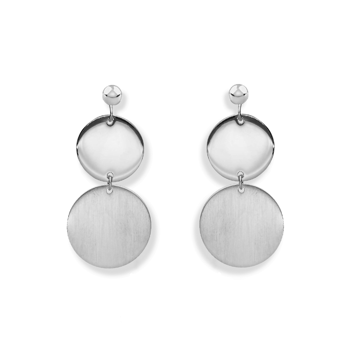 Zjawiskowe kolczyki wiszące wykonane z rodowanego srebra, z dwoma elementami – jednym satynowanym matowym oraz jednym polerowanym to elegancka propozycja dla wyjątkowych kobiet.
