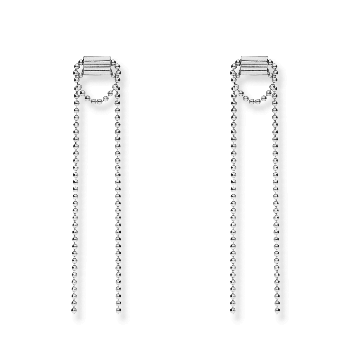 Niezwykle subtelne srebrne, rodowane kolczyki wiszące z łańcuszkami to elegancka propozycja dla przebojowych kobiet.
