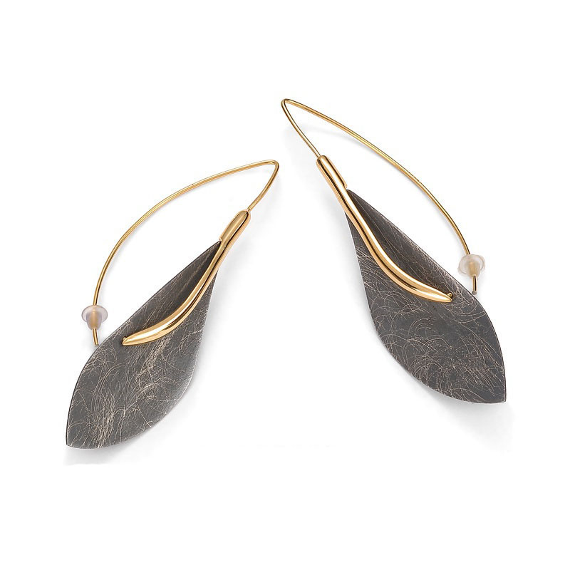 Zachwycające oryginalnością kolczyki pokryte 24-karatowym złotem wraz ze srebrnym ozdobnym oksydowanym motywem liści to subtelna propozycja na wyjątkowy prezent dla kobiet ceniących delikatność i wyczucie stylu.
