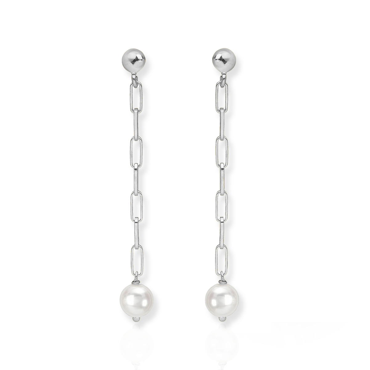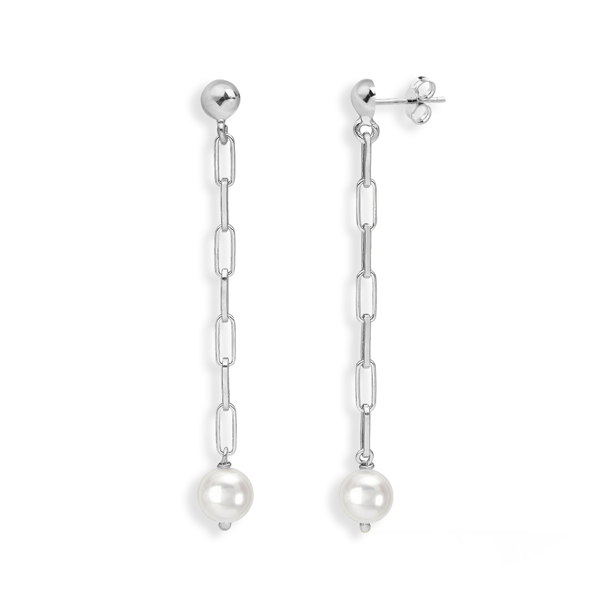 Kolczyki srebrne wiszące z perłą naturalną Mini
