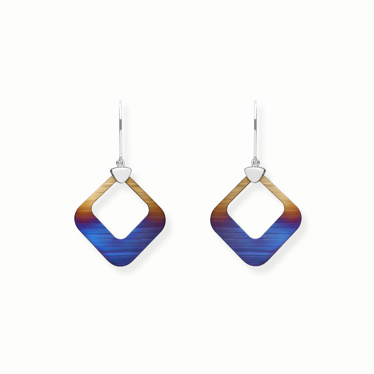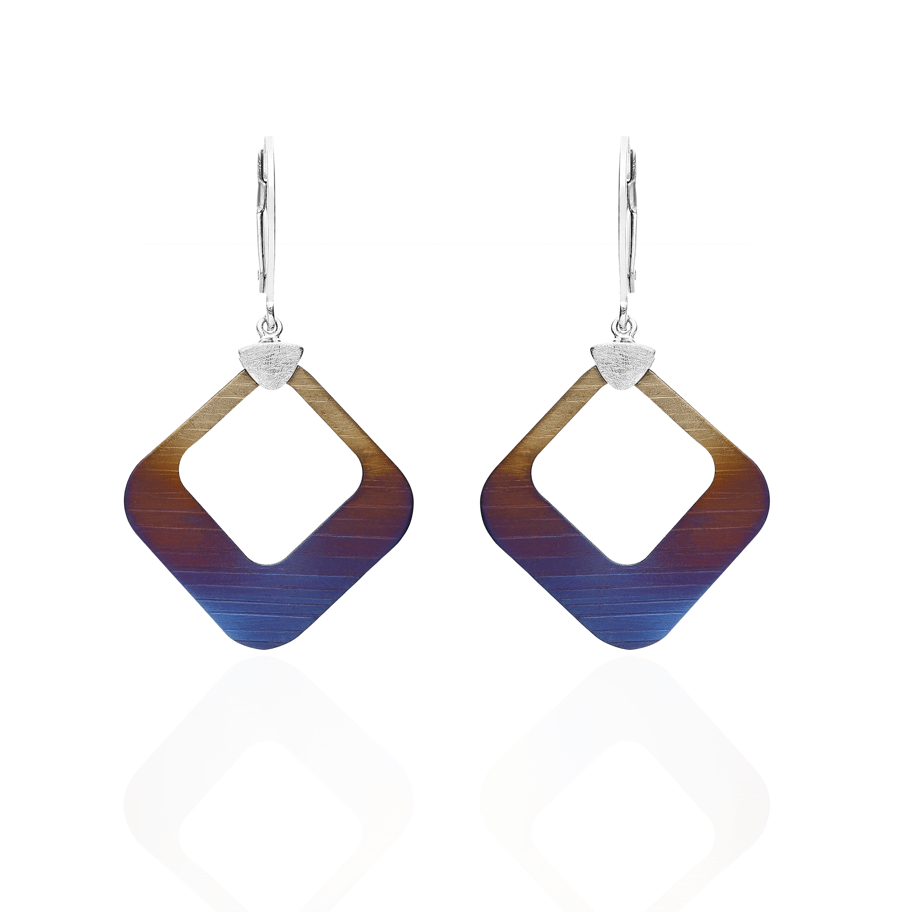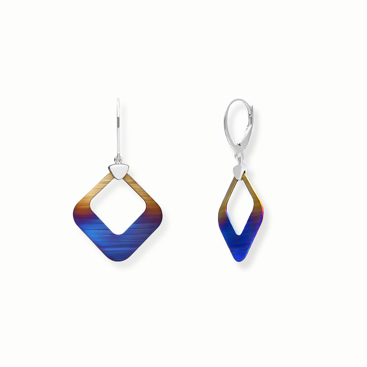 Zaskakujące niebanalną formą, atrakcyjne kolczyki wykonane z rodowanego srebra wraz z oryginalnymi, ręcznie wybarwianymi oraz fakturowanymi Tytanami to ukłon w stronę miłośniczek współczesnego designu.