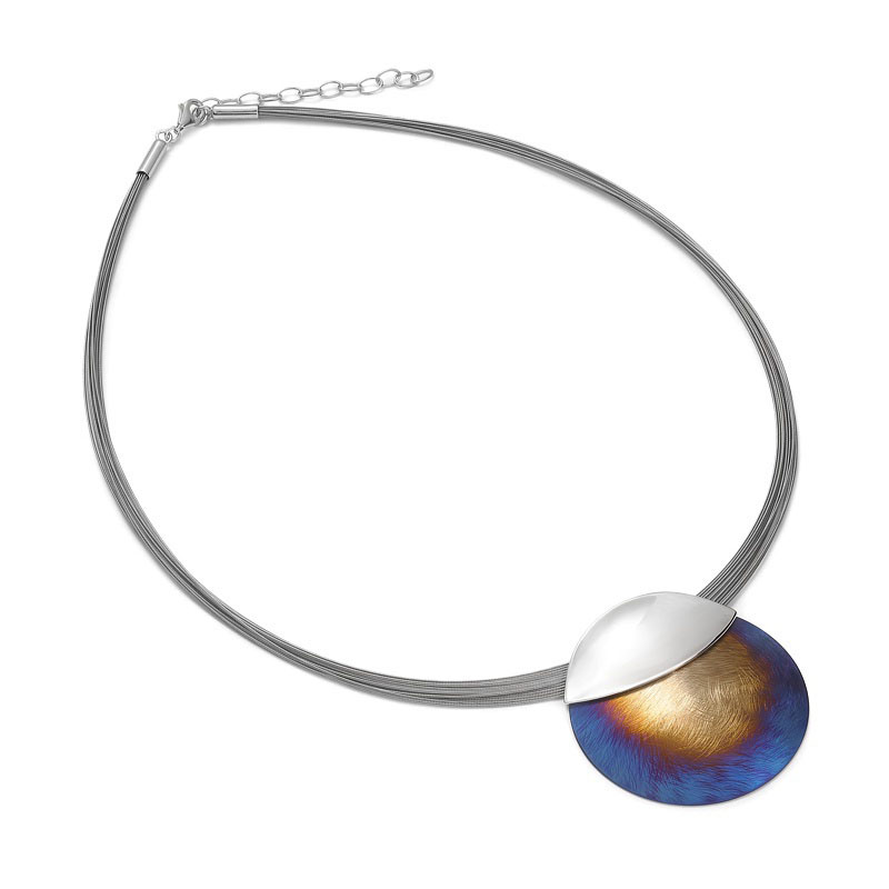 Zachwycająca elegancją, oryginalna kolia wykonana z najwyższej jakości stalowych linek z dekoracyjnym srebrnym i tytanowym dodatkiem to ekskluzywna propozycja dla wymagających kobiet.