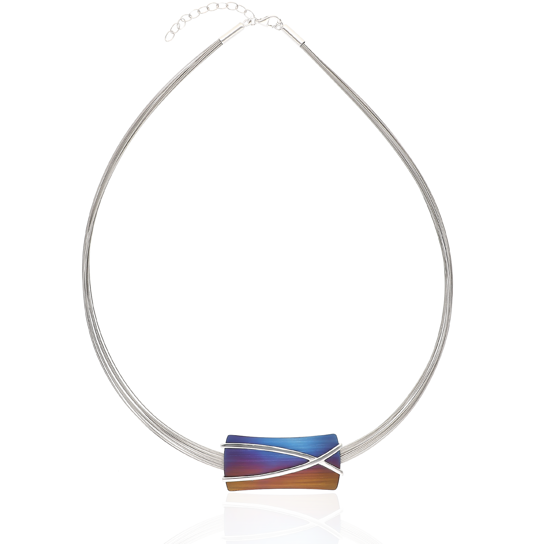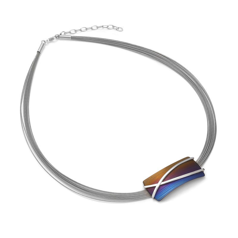 Niezwykle elegancka i gustowna kolia wykonana z najwyższej jakości stalowych linek z ręcznie obrabianym Tytanem i srebrnym rodowanym elementem ozdobnym to idealna propozycja dla Kobiet kochających klasykę.