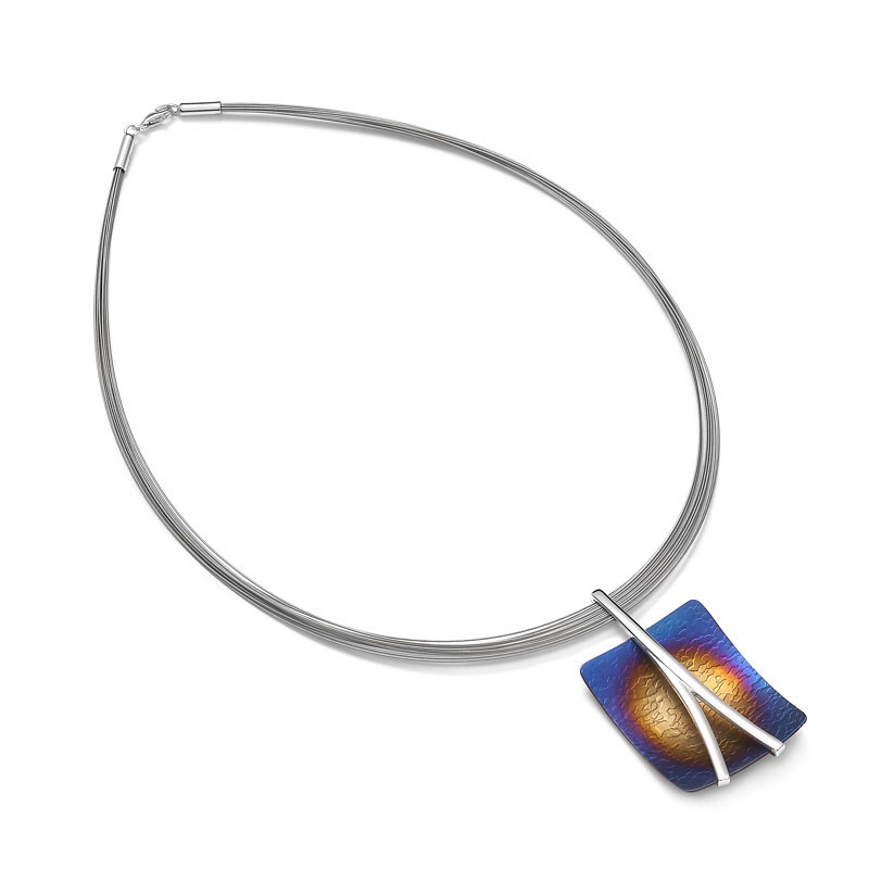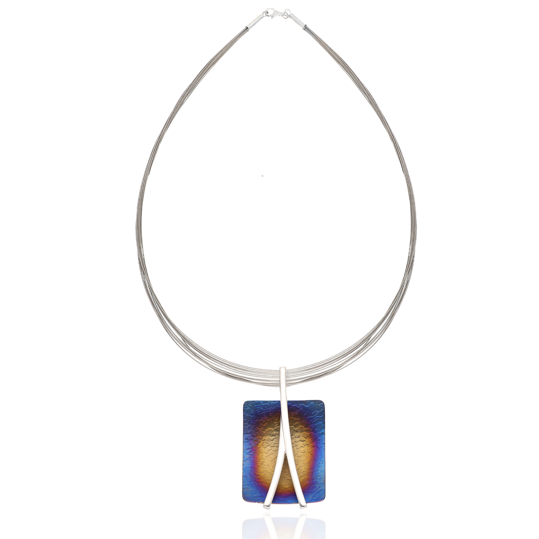 Wyjątkowa pod każdym względem, nowoczesna kolia wykonana z najwyższej jakości stalowych linek z dekoracyjnym fakturowanym Tytanem ze srebrnym elementem to wyznacznik niebanalnego stylu jakim wyróżnia się współczesny design.