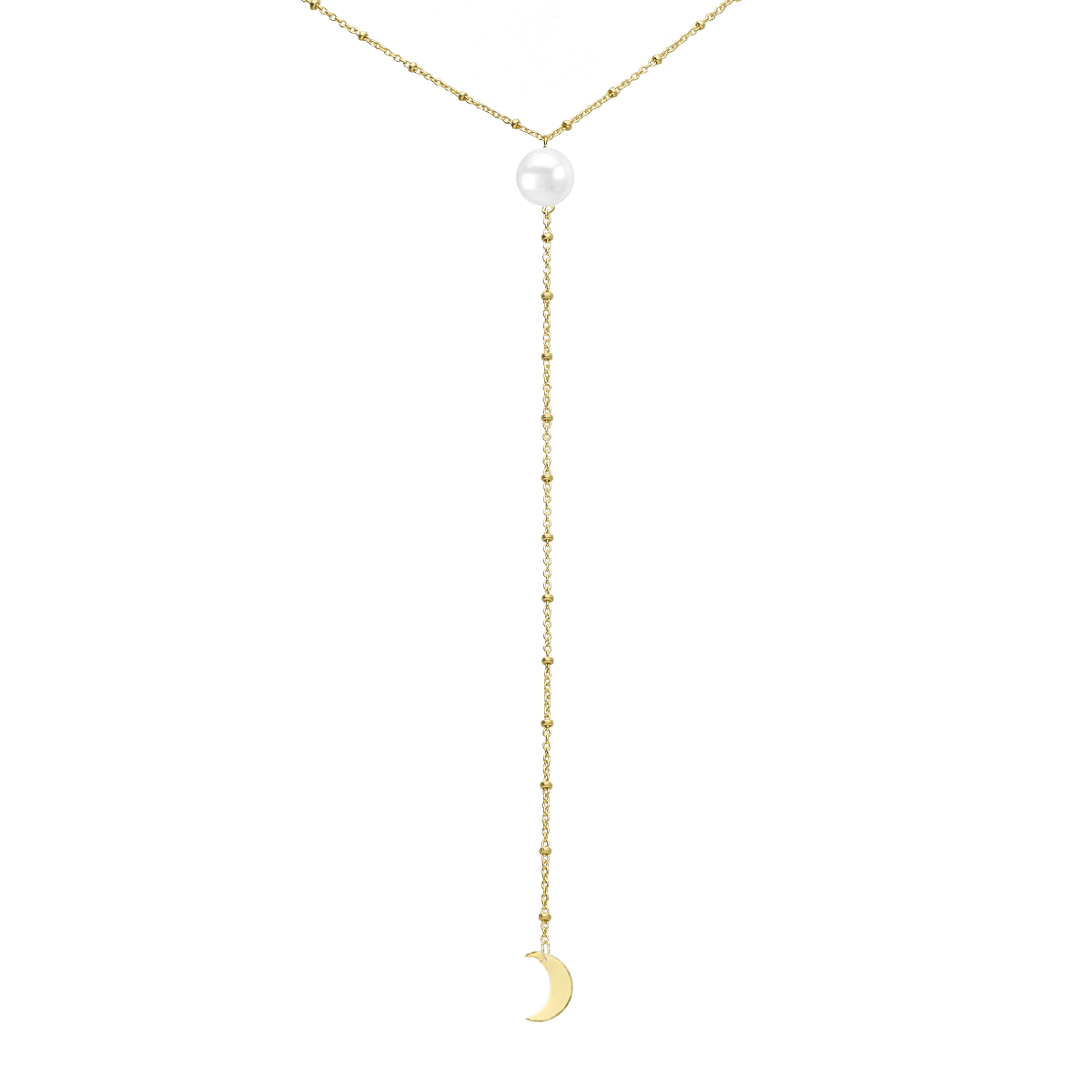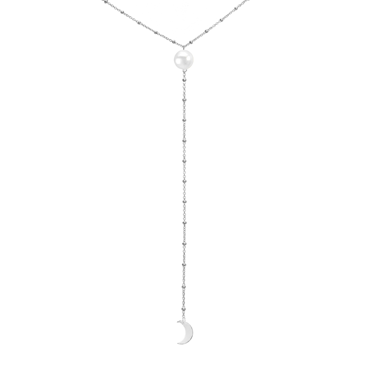 Naszyjnik długi srebrny z perłą naturalną i Księżycem
