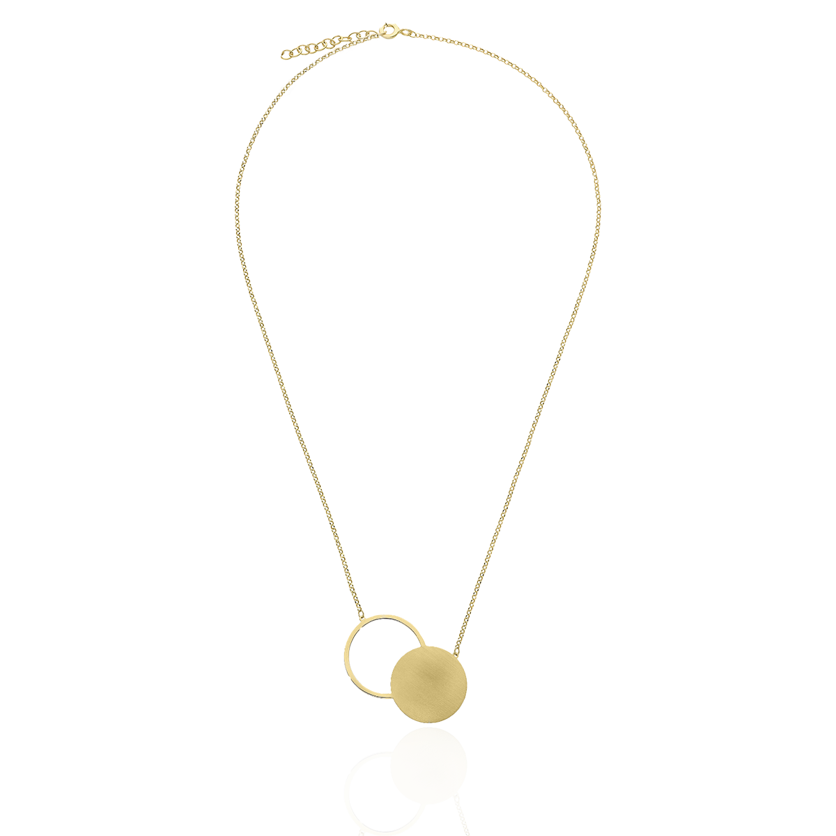 Wyróżniający się na tle innych, srebrny naszyjnik z kołami – jednym satynowanym i jednym polerowanym to wyjątkowa propozycja dla wymagających kobiet.