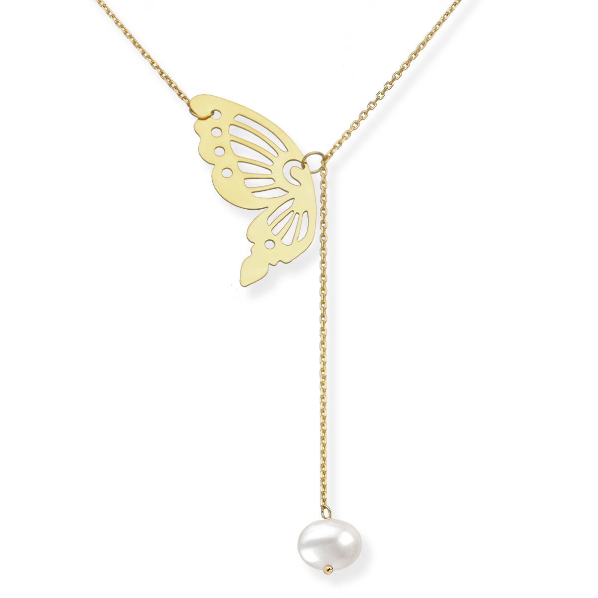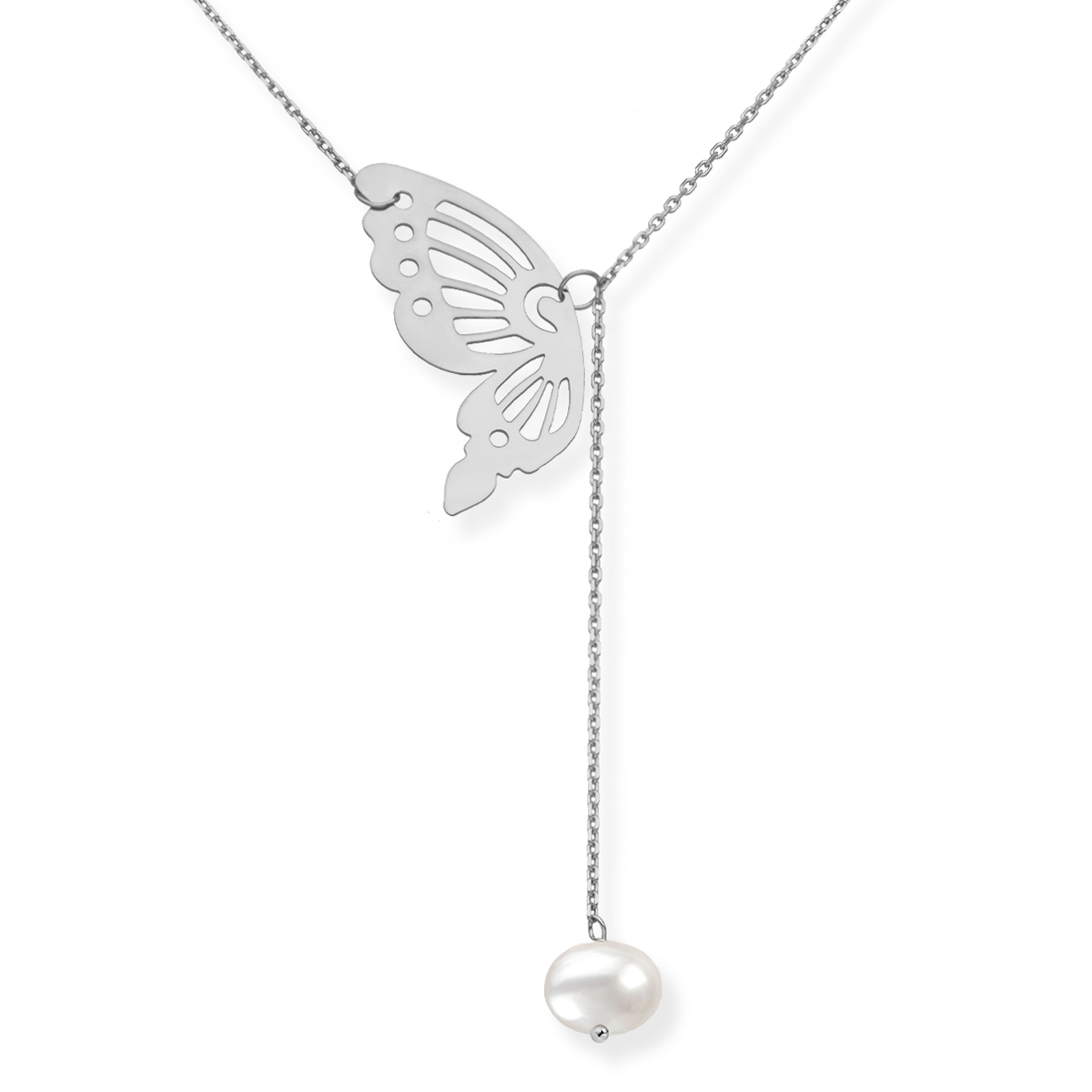Naszyjnik srebrny krawatka Motyl z perłą naturalną