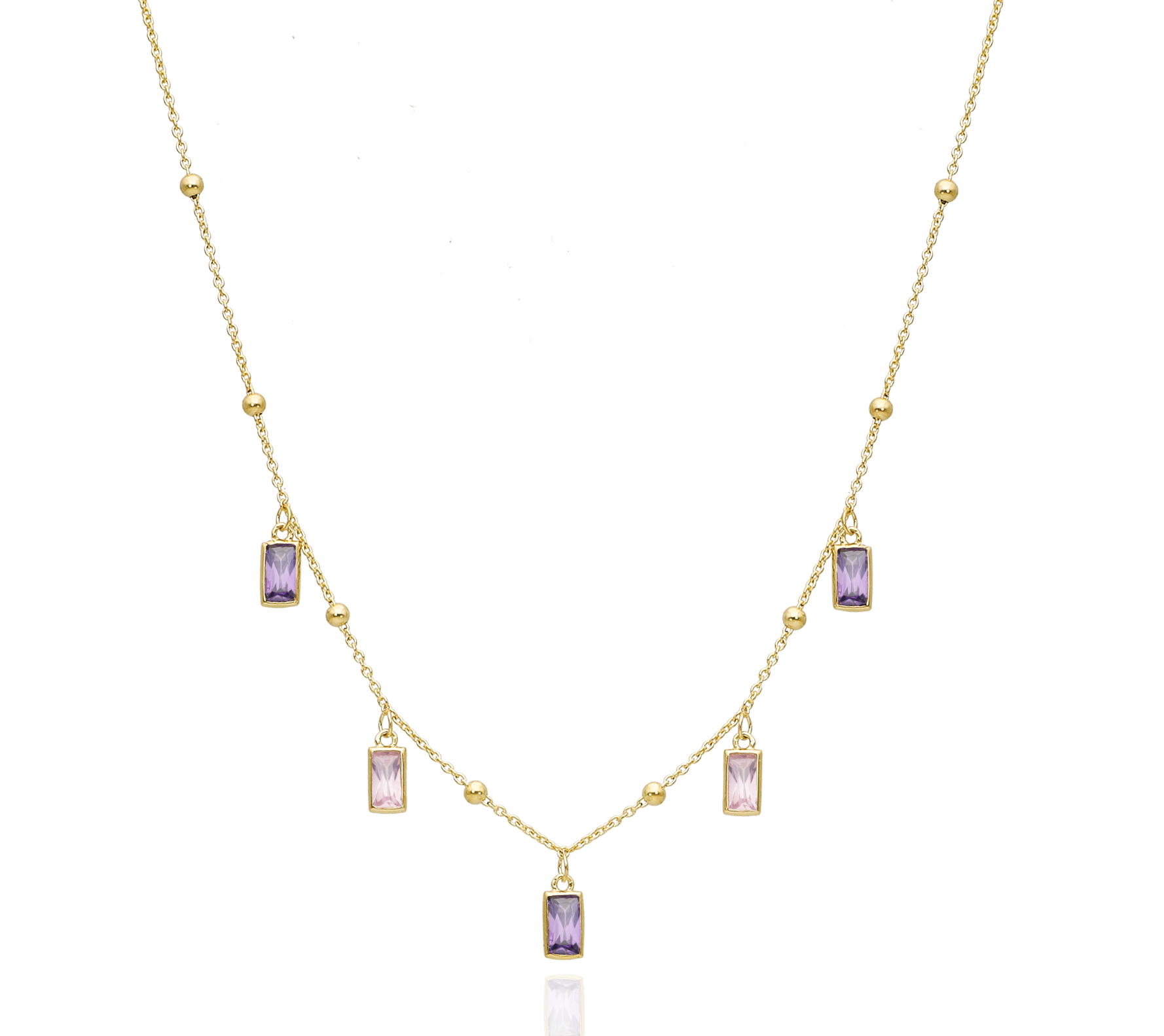 Niezwykle efektowny srebrny naszyjnik pokryty 24-karatowym złotem wraz z gustownymi mieniącymi się rubinowymi cyrkoniami to wyjątkowa propozycja dla wyjątkowych kobiet.