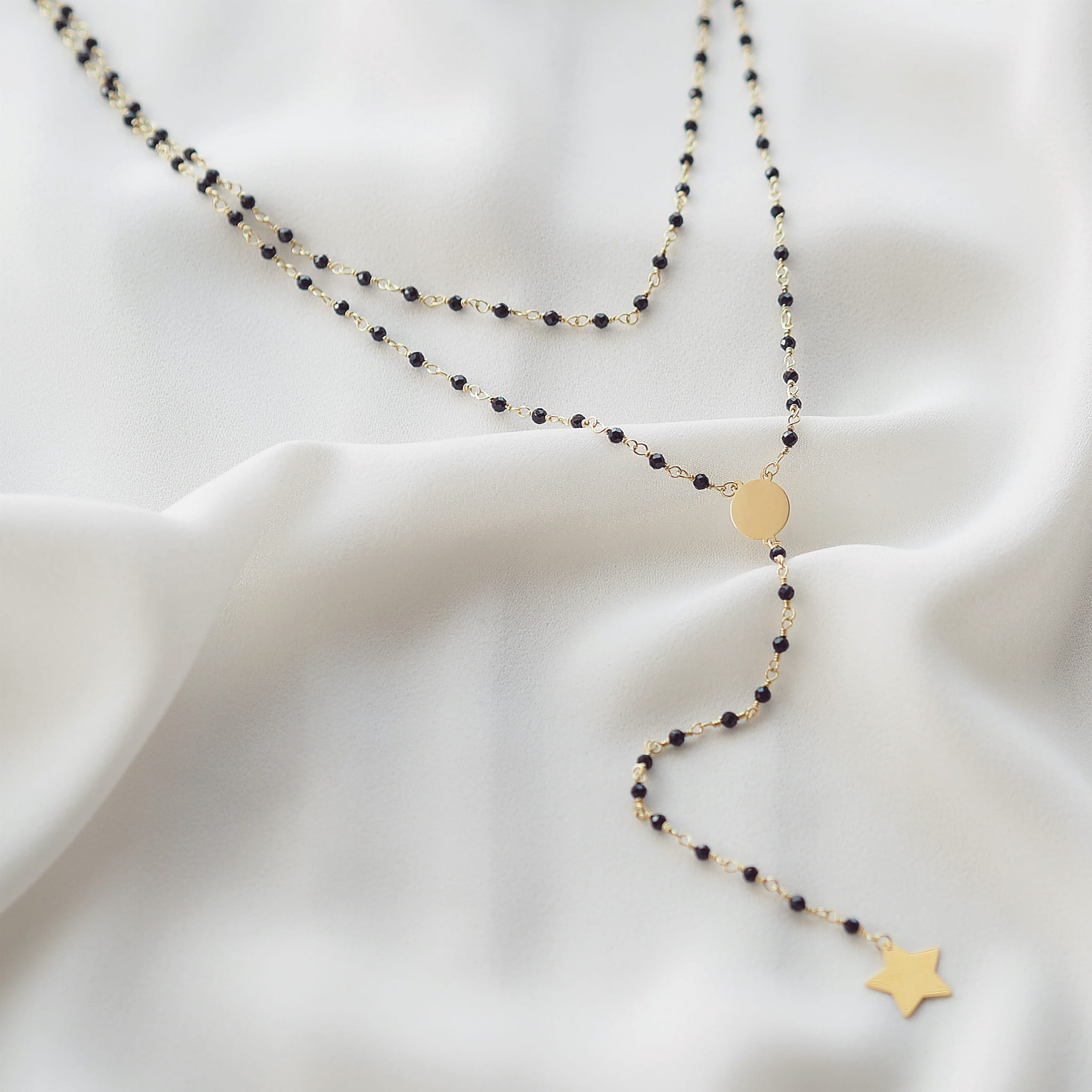 Naszyjnik srebrny pokryty 24-karatowym złotem różaniec z gwiazdką to wyjątkowy dodatek do ciekawych stylizacji