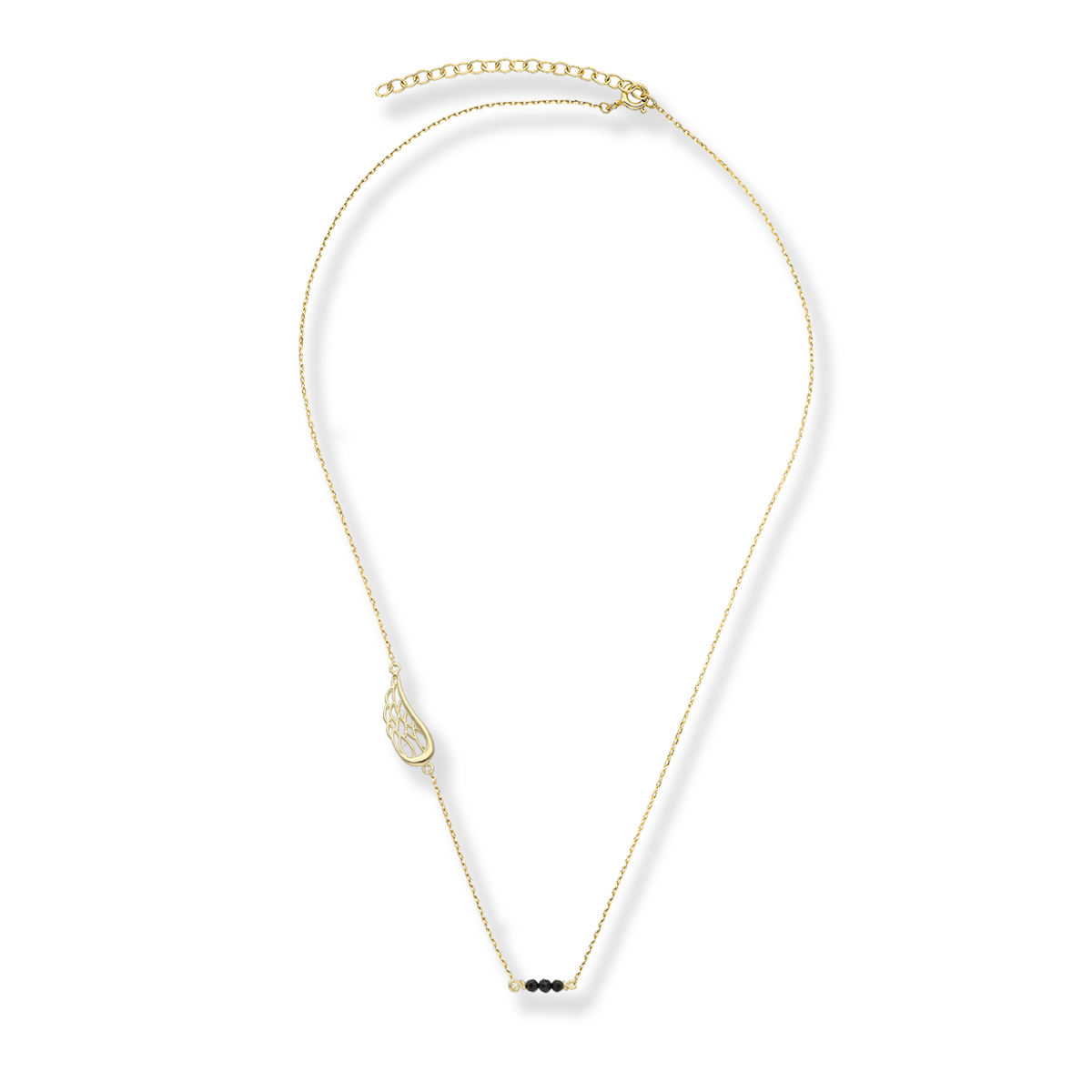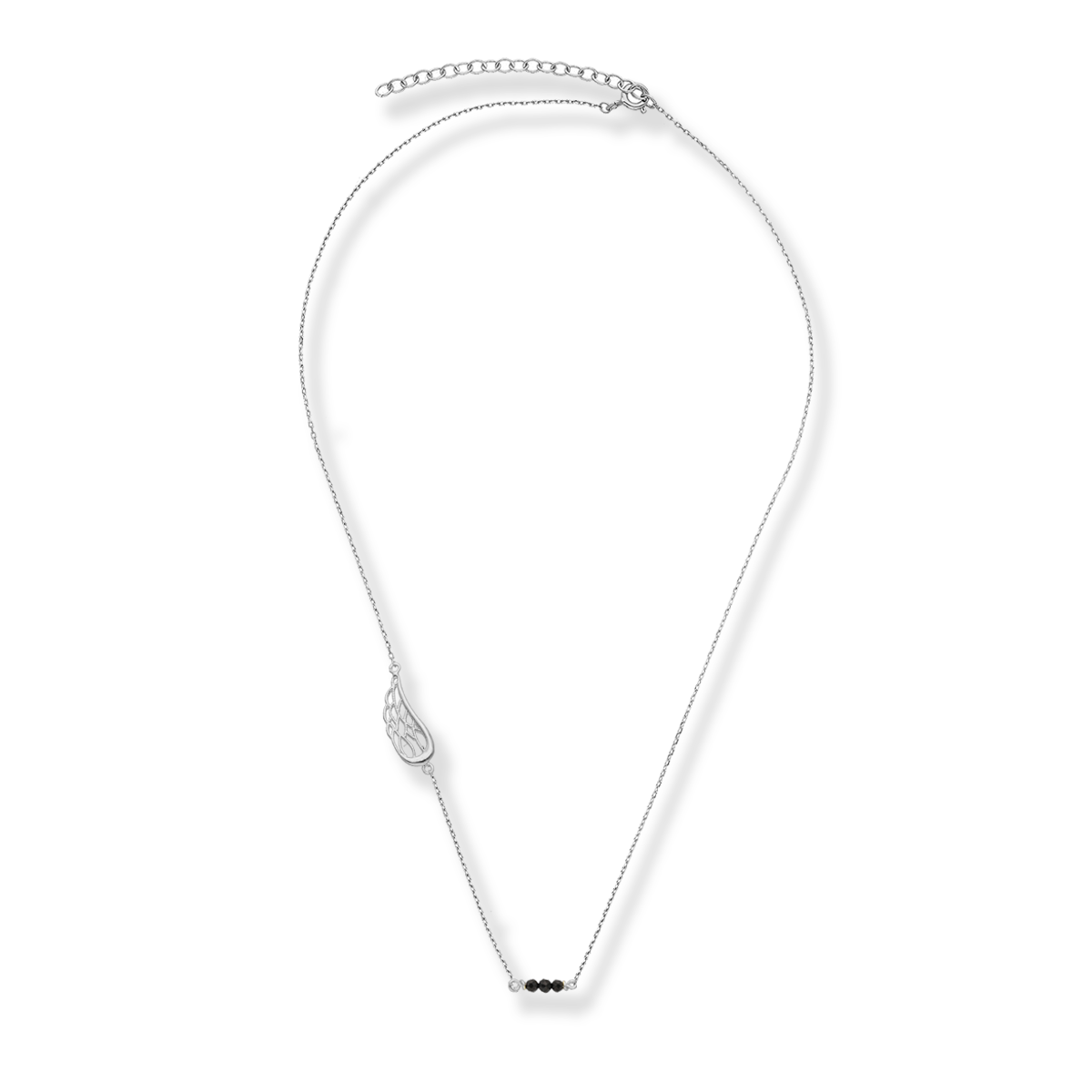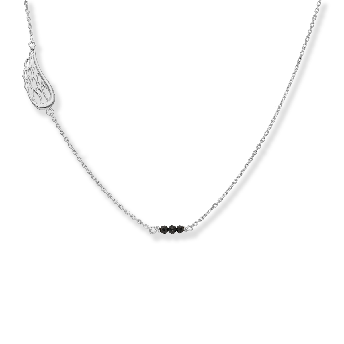 Wyróżniający się na tle innych naszyjnik wykonany z rodowanego srebra wraz z efektownym srebrnym skrzydłem i czarnymi onyksami naturalnymi to wyjątkowa propozycja dla miłośniczek współczesnego piękna.
