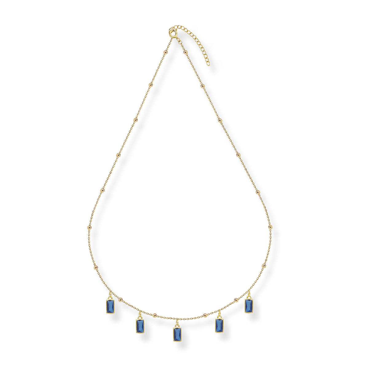 Niezwykle efektowny srebrny naszyjnik pokryty 24-karatowym złotem wraz z gustownymi mieniącymi się Szafirami syntetycznymi to wyjątkowa propozycja dla wyjątkowych kobiet.