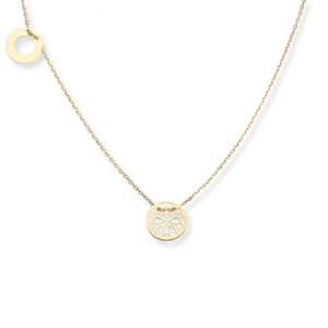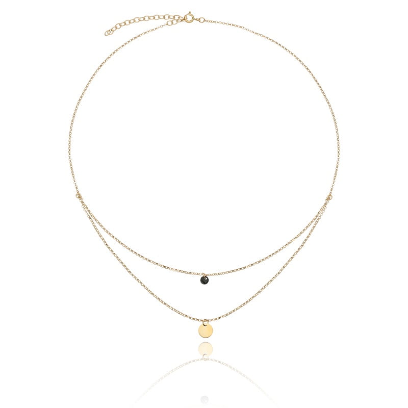 Niezwykle elegancki, podwójny srebrny naszyjnik pokryty 24-karatowym złotem wraz z gustowną blaszką i efektowną czarną cyrkonią to wytworna propozycja dla wyróżniających się kobiet.