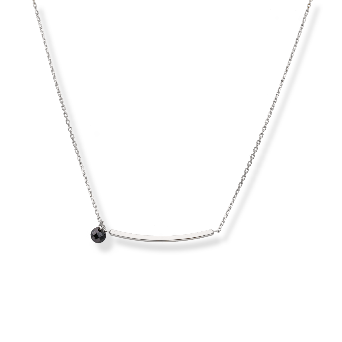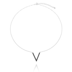 Przyciągający spojrzenia srebrny, rodowany naszyjnik wraz z efektownym elementem i mieniącą się czarną cyrkonią to wytworna propozycja dla wyróżniających się kobiet.