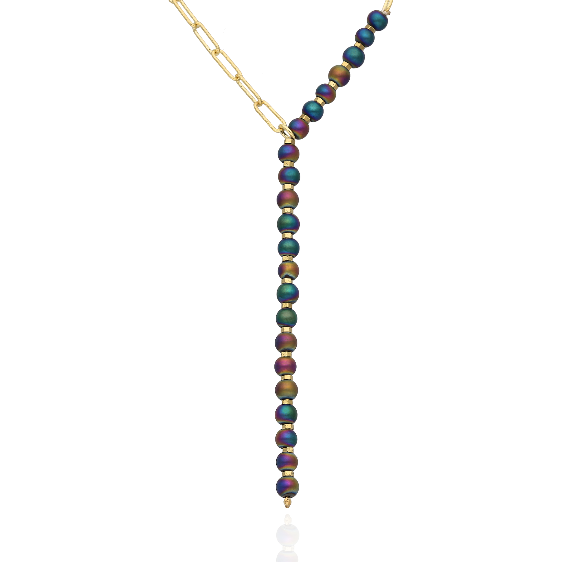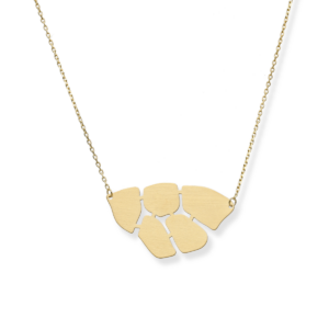 Ujmujący oryginalną stylistyką, zjawiskowy naszyjnik wykonany z pozłacanego 24-karatowym złotem srebra z dodatkiem naturalnych hematytów o niepowtarzalnej barwie to wspaniała propozycja dla wyjątkowych kobiet.