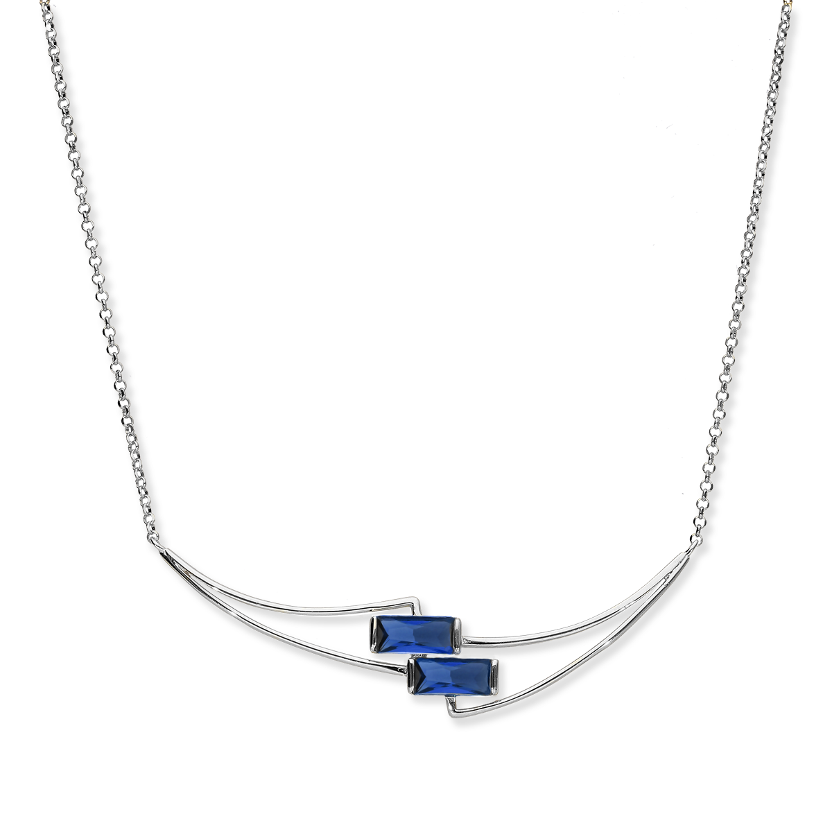 Niezwykle efektowny srebrny naszyjnik pokryty rodem z mieniącymi się niebieskimi cyrkoniami to wyjątkowa propozycja dla wyjątkowych kobiet.