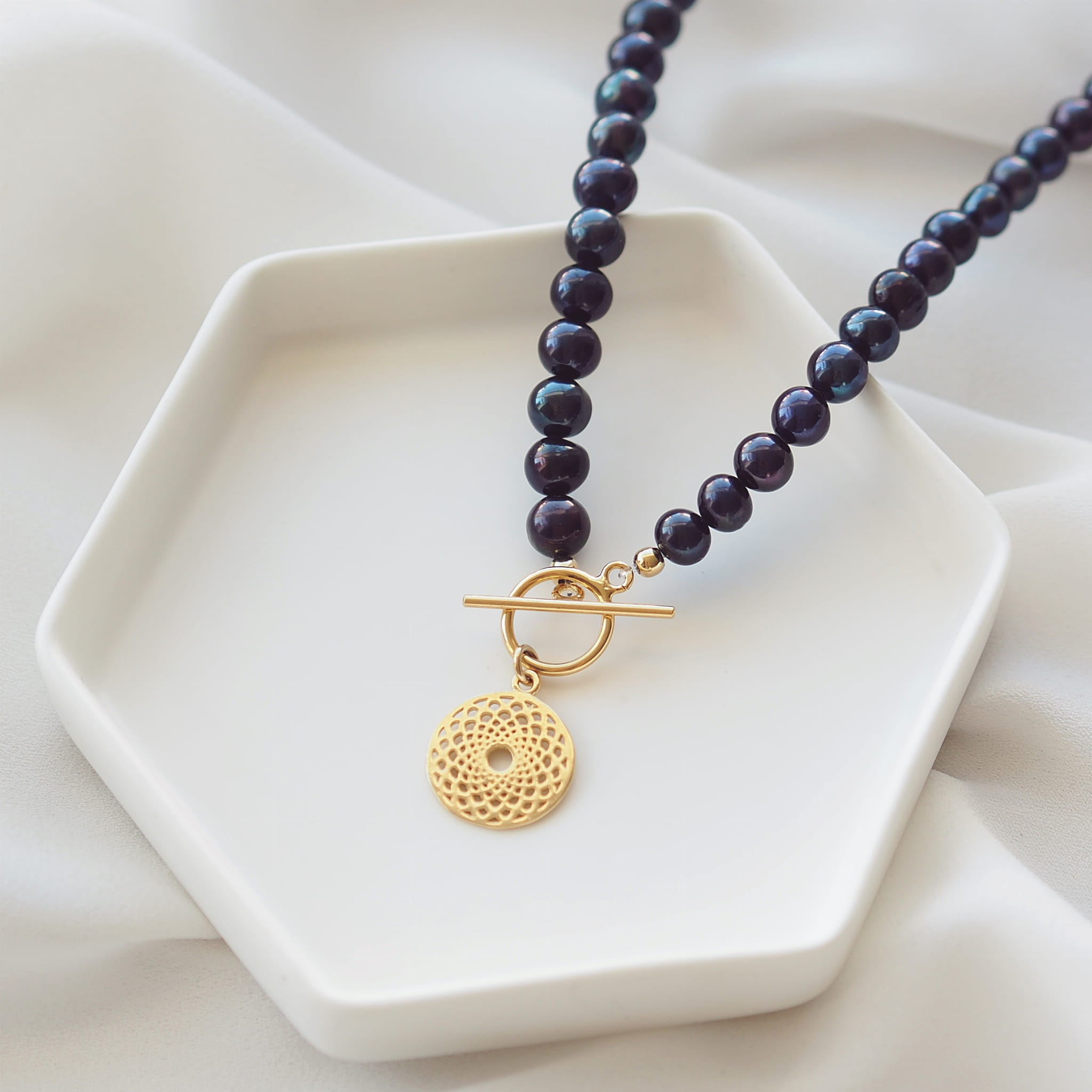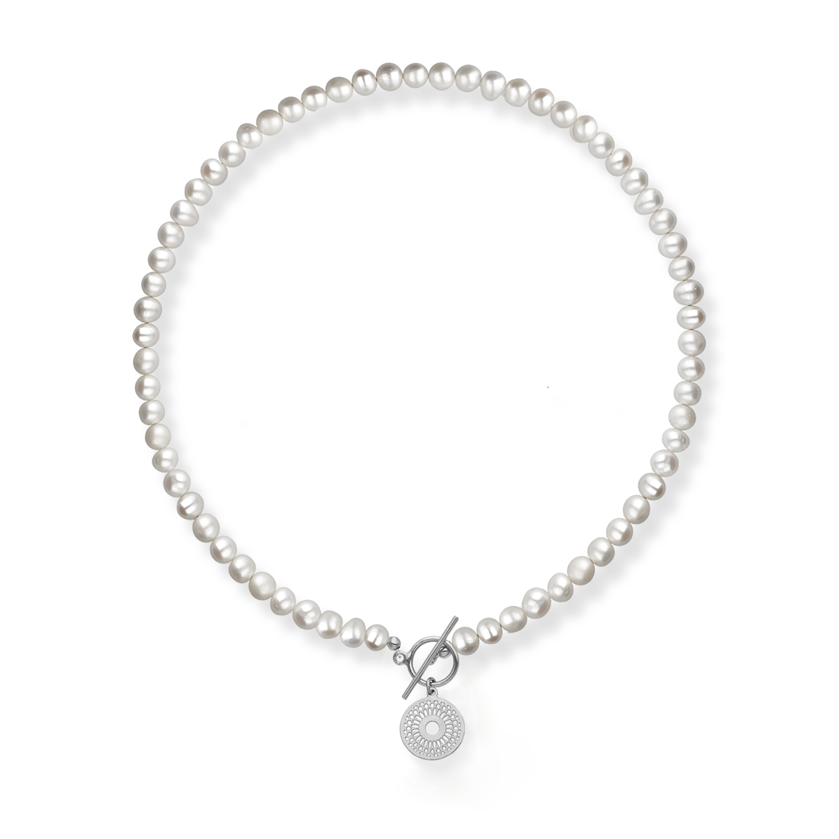 Naszyjnik srebrny z pereł naturalnych z dużym ażurem