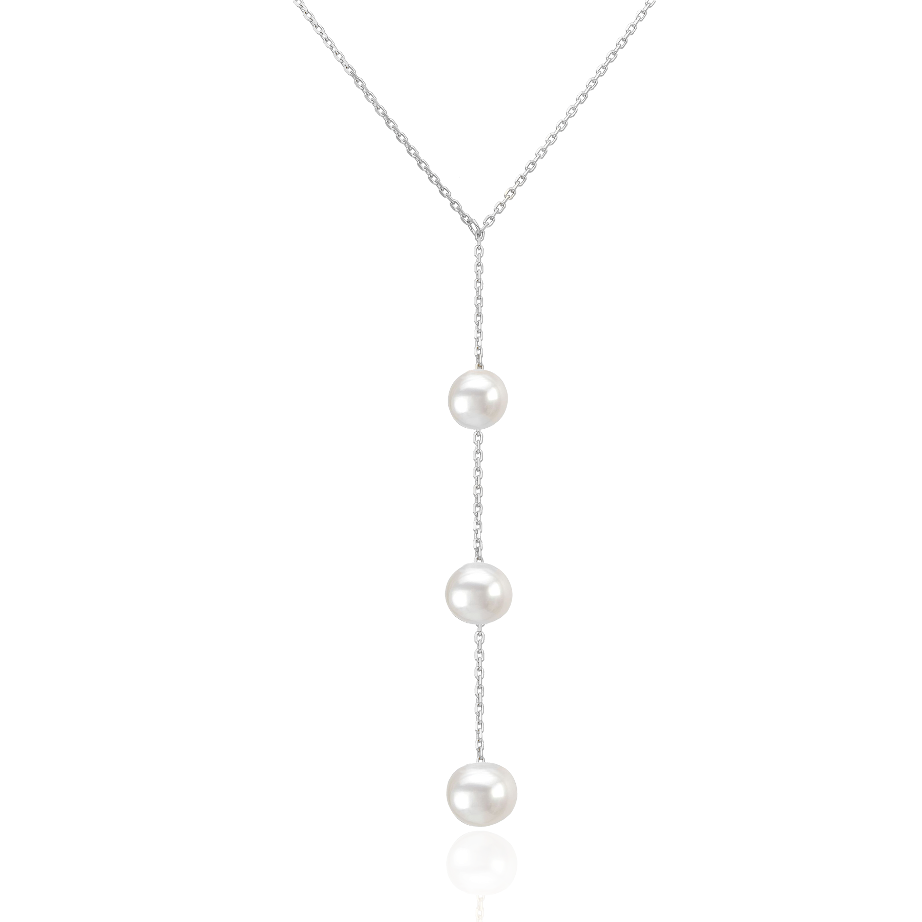 Niezwykle elegancki srebrny, rodowany naszyjnik ozdobny wraz z białymi perłami naturalnymi słodkowodnymi (hodowlanymi) to jedyna w swoim rodzaju propozycja dedykowana wszystkim romantyczkom.