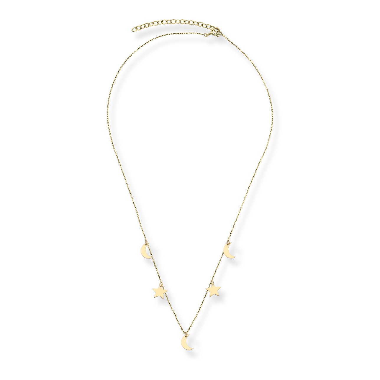 Delikatny srebrny naszyjnik pokryty 24-karatowym wraz z oryginalnymi wisiorkami w kształcie gwiazdek i księżycy to gustowna propozycja podkreślająca wyjątkowość każdej kobiecej stylizacji.