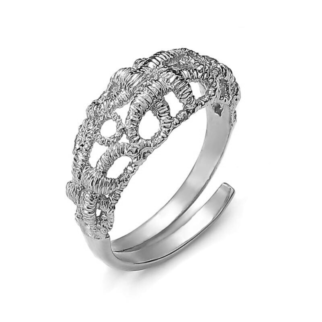 Wyjątkowy pod każdym względem wytworny, rodowany pierścionek z możliwością regulacji, wykonany z najwyższej jakości srebra to elegancka propozycja dla dominujących kobiet.
