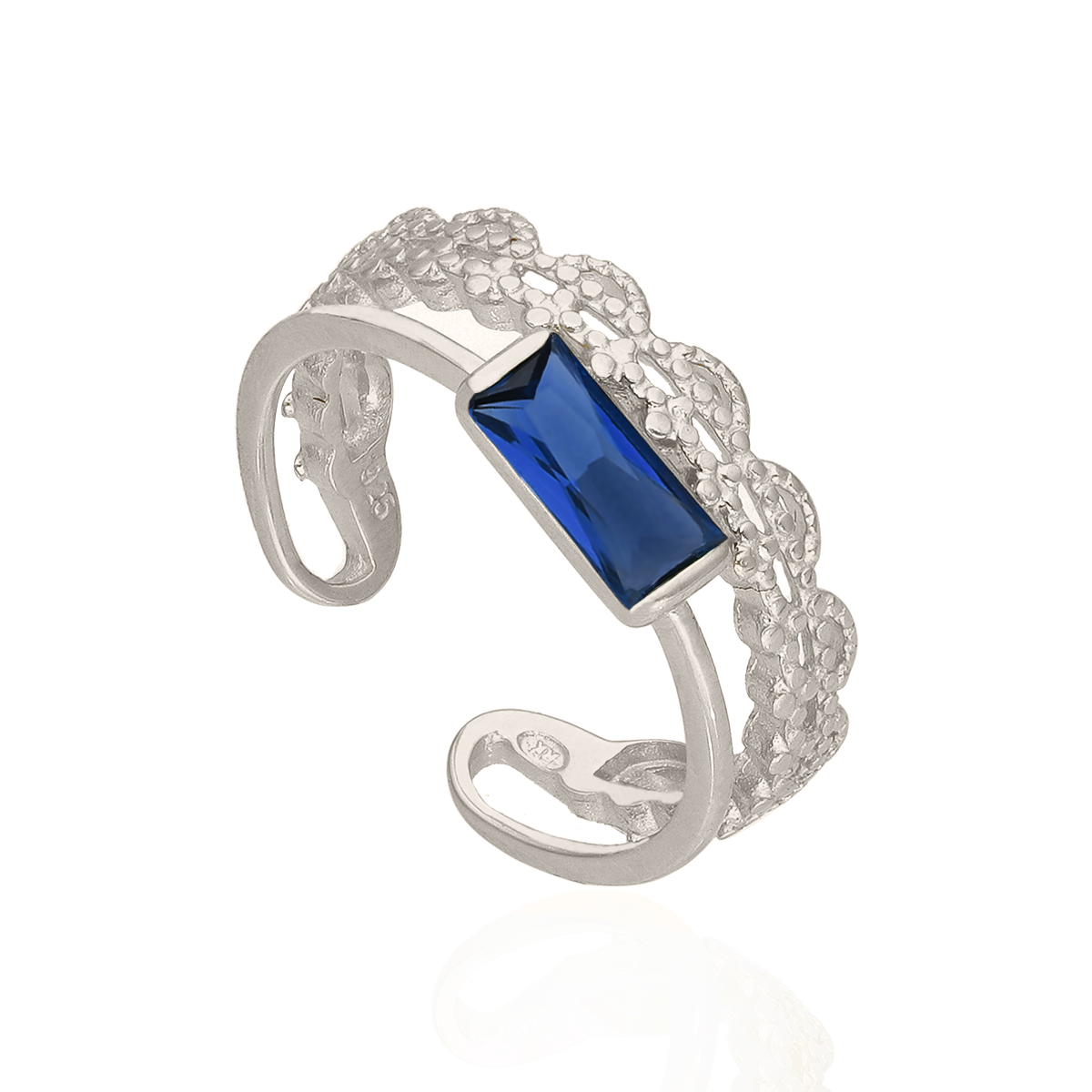 Pierścionek srebrny z koronką i kamieniem