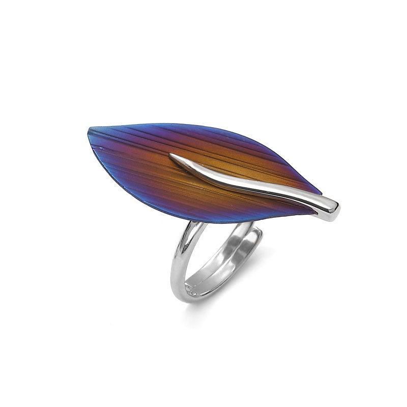 Pierścionek srebrny rodowany z Tytanowym Liściem